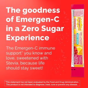 Emergen-C Zero Sugar 1000 mg Vitamin C Powder for Daily Immune Support Caffeine Free Vitamin C Supplements with Zinc and Manganese. B Vitamins and Electrolytes. Raspberry Lemonade Flavor – 36 Count