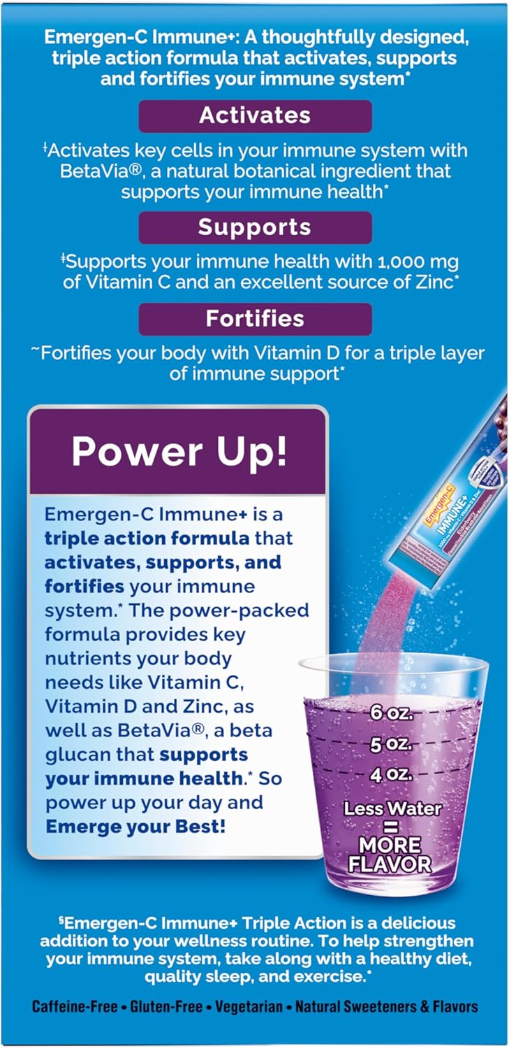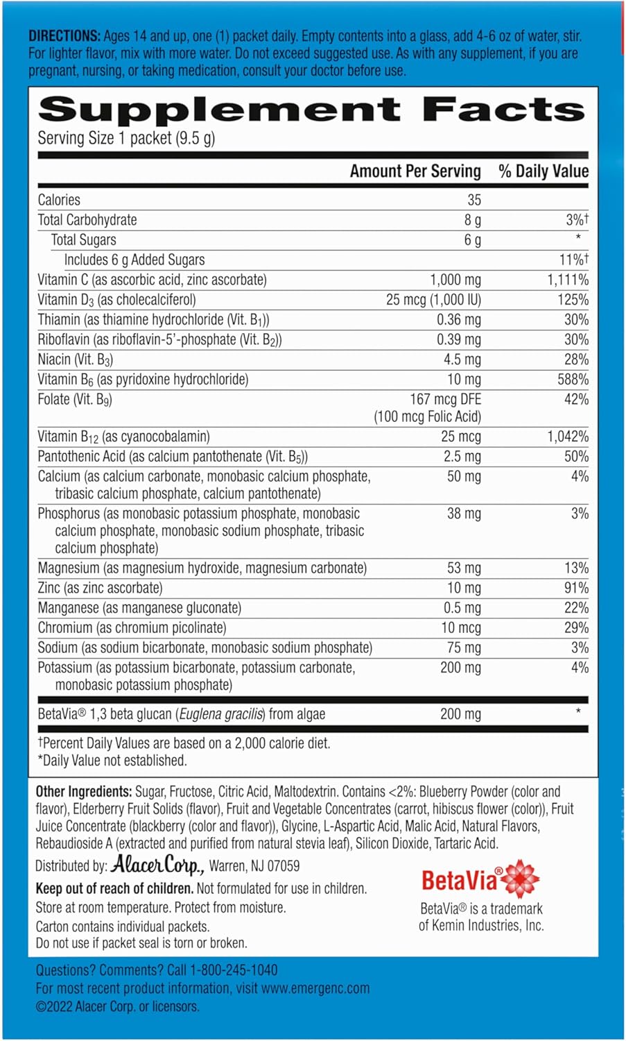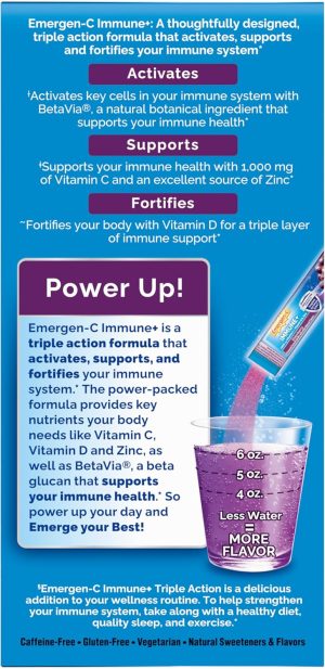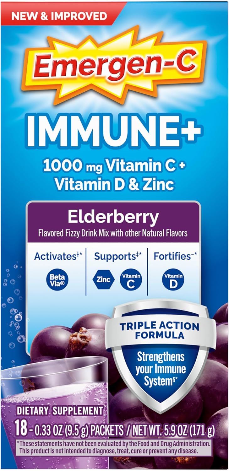 - Experience the power of Emergen-C and the goodness of botanicals with the great tasting Emergen-C Elderberry fizzy drink mix. which makes immune support simple. even on the go