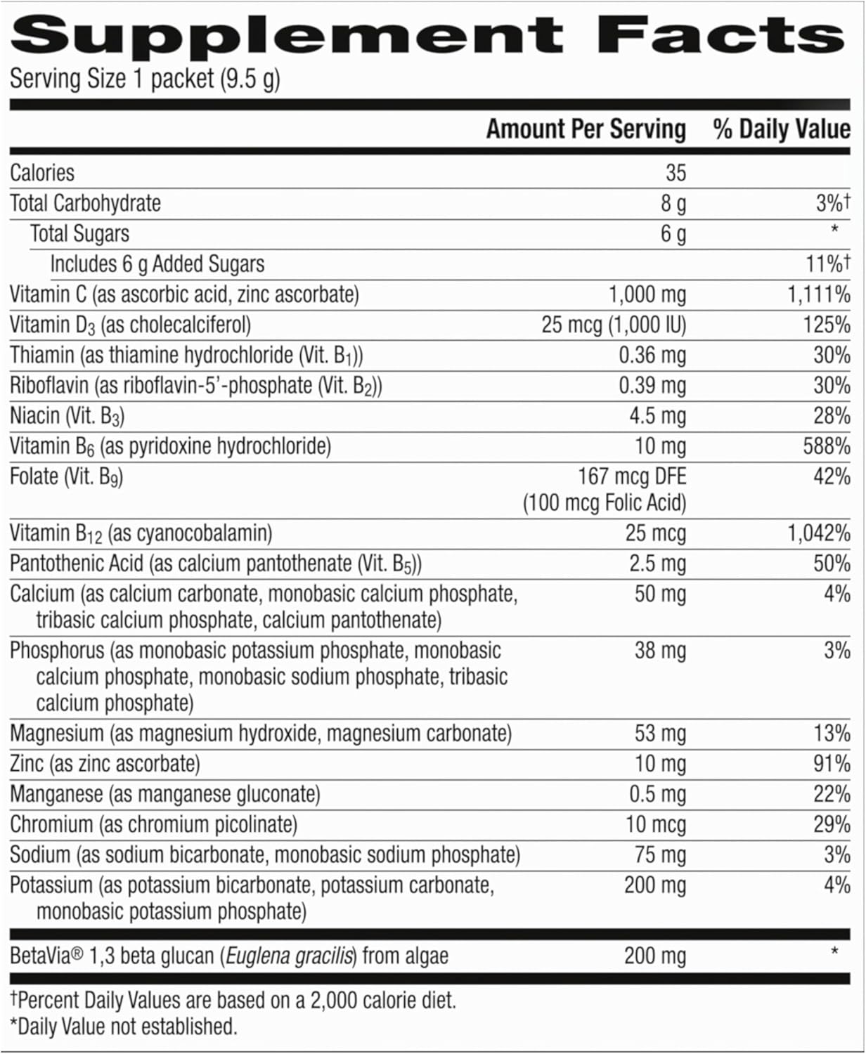 - This elderberry instant drink mix also support your immunity with antioxidants Zinc and Manganese. and B vitamins to naturally enhance your energy